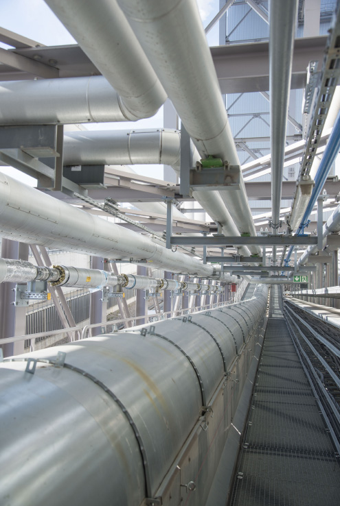 Insgesamt betreiben wir vier Anlagen, die Blöcke 6, 7, 8 und 9, wobei Block 7 und 8 mit einer Nettoleistung von 425 MW bzw. 435 MW zur endgültigen Stilllegung angezeigt wurden. Nach dem Systemrelevanzausweis durch die Bundesnetzagentur können die Blöcke 7 und 8 nur noch auf Anforderung des Netzbetreibers TransnetBW im Rahmen der sogenannten Netzreserve betrieben werden. Unsere Leistung in Zahlen ausgedrückt: Die installierte Werkleistung beträgt brutto 2.146 MWel bzw. netto 1.958 MWel, die installierte Fernwärmeleistung (Heizwasser) rund 1.500 MWth. Von der Nettoleistung stehen 120 MWel für die Produktion von Einphasenbahnstrom für die DB Energie GmbH zur Verfügung.